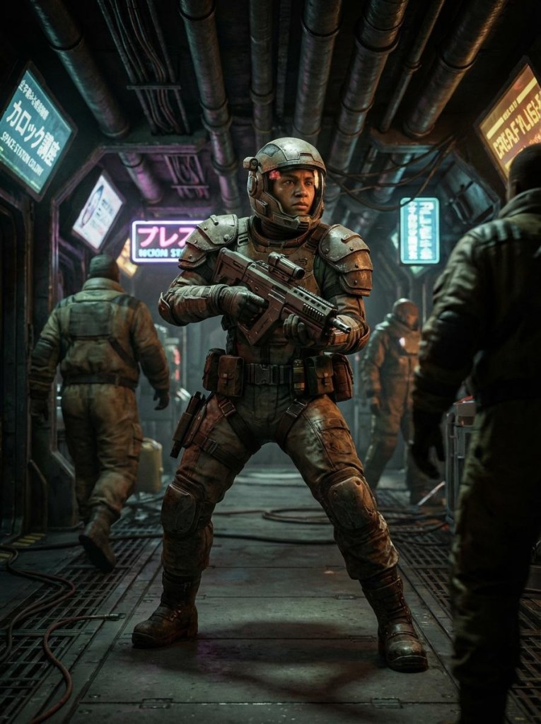 In the Cradle — that rough 10,000–12,000 light-year bubble of space around old Sol — humanity’s been mixing genes and living in every kind of gravity for centuries. Skin color? Old Earth tribes? Nobody gives a damn. What people notice the second you step (or drift) into a room, a bar, or a firefight is your Gravity Rating — GR.