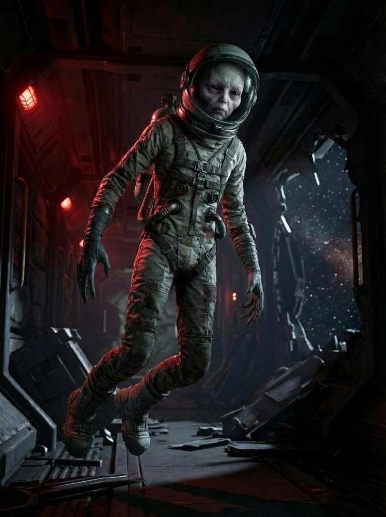 Appearance: Ultra-tall and rail-thin (2.0–2.2 m / 6’7″–7’3″), long fragile arms and legs like stretched rubber bands, pale or almost see-through skin with veins showing, big eyes, puffy faces from fluid floating up.