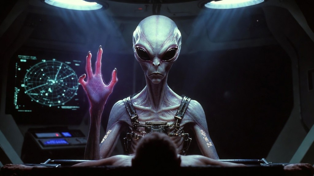 Their vessels are smooth, seamless discs or rounded triangles measuring 10–50 meters in diameter, with no visible engines, windows, or seams. These craft can hover silently, accelerate instantaneously, phase directly through solid matter (including ship hulls, planetary crust, or station bulkheads), and emit powerful electromagnetic pulses that induce widespread blackouts, sensor failure, and “missing time” episodes in human witnesses.
