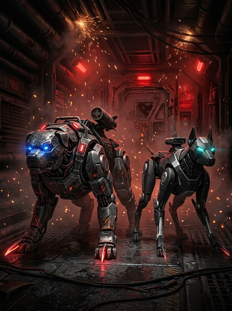 The Rottweiler drops the crate, rears up, and slashes viciously with both front paw blades, wounding one boarder severely (full damage + complication: one enemy’s weapon is knocked away). However, the second boarder lands a grazing hit. Roll on Damage & Wear Table: d20 = 11 → Minor wear. The bot suffers –1 to all Action Rolls for the rest of the scene. It remains combat-effective but must be more cautious. The fight continues with the bot now at a slight penalty.