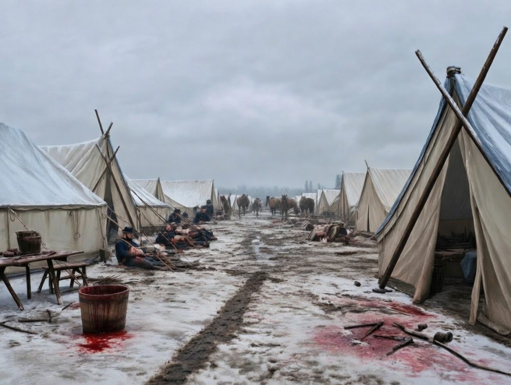 He turned from the operating table and pushed aside the tent flap. His breath plumed demon’s smoke in the freezing air. Demon smoke was his brother’s childhood name for it. Outside, the yard was a meat garden of wounded and dying men sprawled across the snow and mud. But it wasn’t they he sought. His gaze swept the camp and found his wife, Ophelia, striding beside General Ord. The general’s round face wore a look of pure discomfort. His thick blond mustache twitched as he tugged at it nervously. Ophelia’s expression was iron stern, unyielding, and the very look she had turned on Nicolas himself more times than he cared to count. She was scolding the man without mercy.