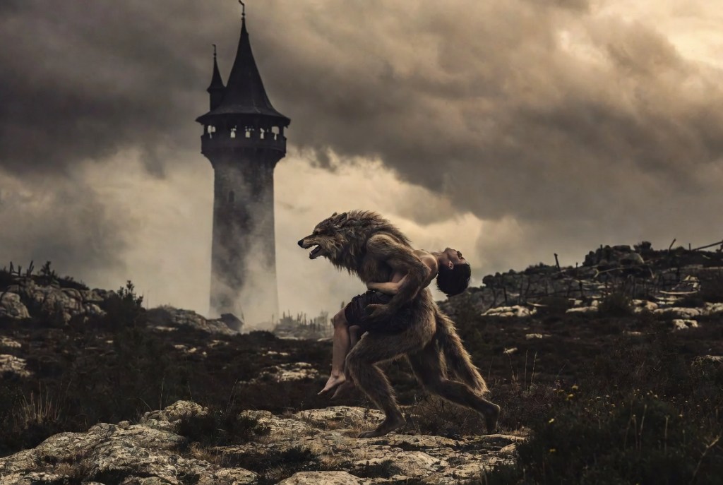 Outside, in the garden, a massive rotting werewolf with patches of exposed bone and rancid flesh waited in the shadows. Nicolas made his way across the garden walkway. The thing pounced. The beast dragged him to the cottonwood stump. There, in the shadow of childhood sins, it snapped his back and fell upon him to feast.