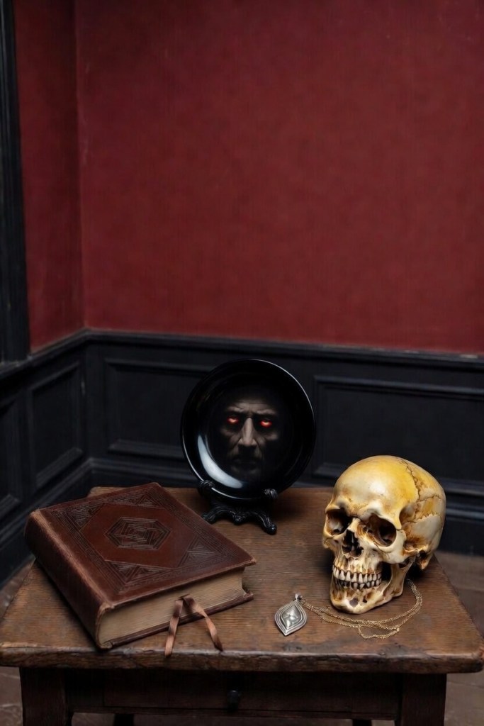 Back in the red-lit museum parlor beneath the manor house, the prizes rested on the heavy oak table amid jars of preserved horrors.